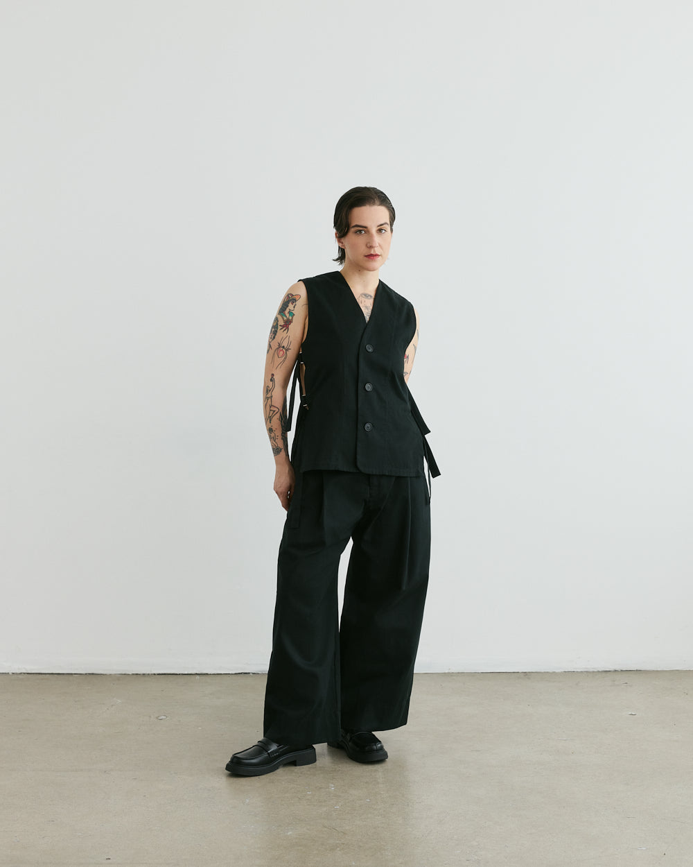 Effortlessly blending structure and comfort, the Sabato vest offers a refined and tailored fit. Its adjustable straps and the boxy cut allow endless layering possibilities and will add a touch of sophistication to any outfit.